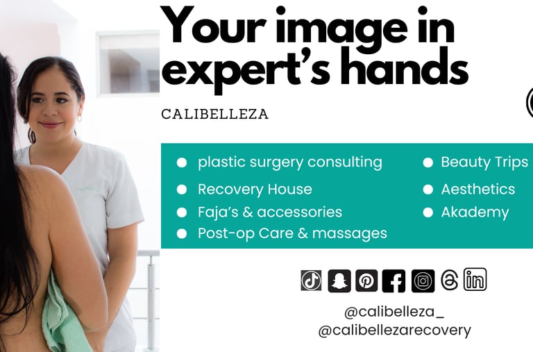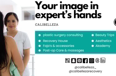 At Calibelleza, we specialize in consulting and personalized aftercare for aesthetic journeys across borders. From beauty trips to curated post-op supplies, we offer international clients expert support — including recovery house access, advanced aftercare treatments, and tailored guidance in every step of their healing process. With a focus on aesthetics, wellness, and results, Calibelleza is your trusted name in global post-op beauty care.